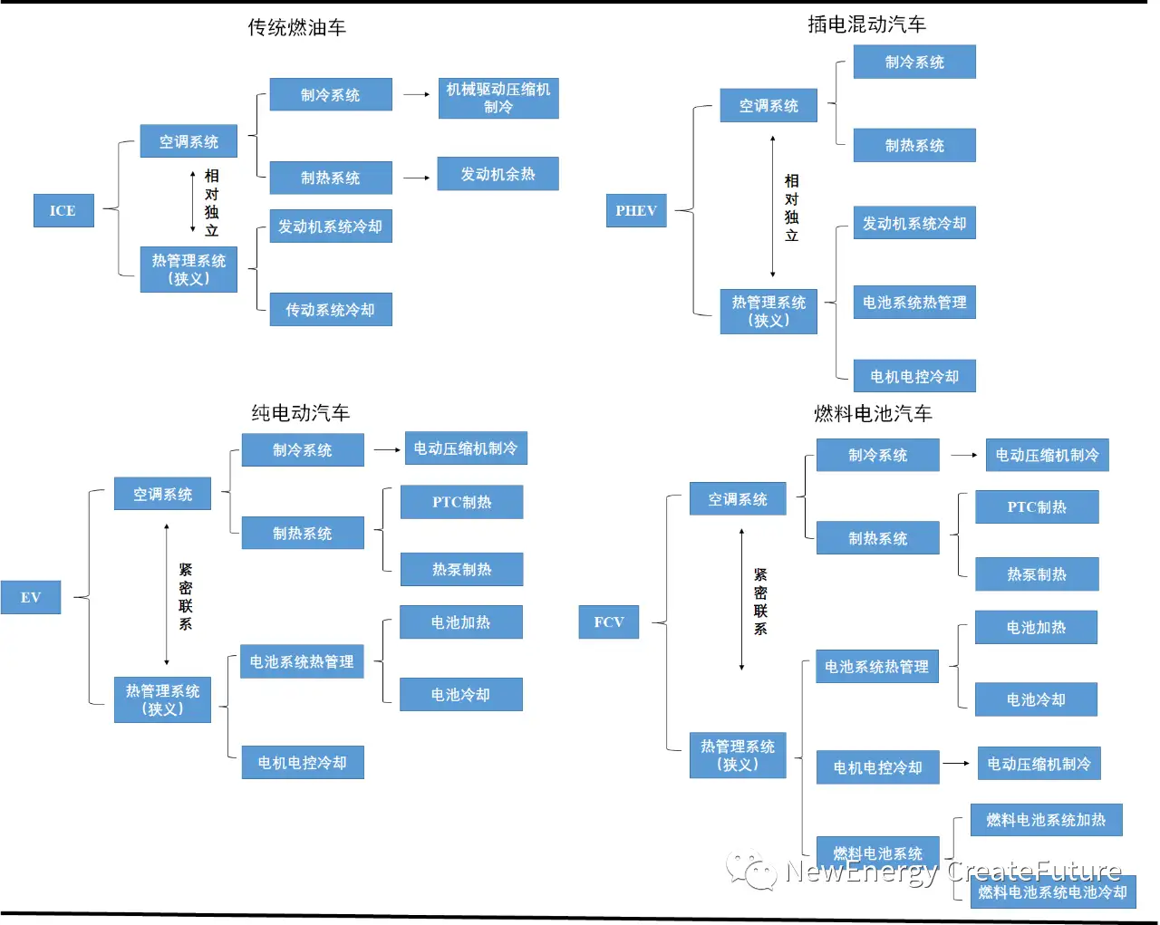 从狭义上来讲,热管理仅指对车载热源系统进行综合管理,不包含空调系统热管理,但是随着新能源的发展,整车热管理相关零部件数量骤增、系统之间关联融合、热管理控制对象更加复杂,整车的热量管理已经成为了一个广义上的课题。