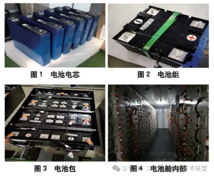 电池包由单体电芯(磷酸铁锂电池、高能量密度30Ah、方形铝壳)、电池模块、电池簇组成。