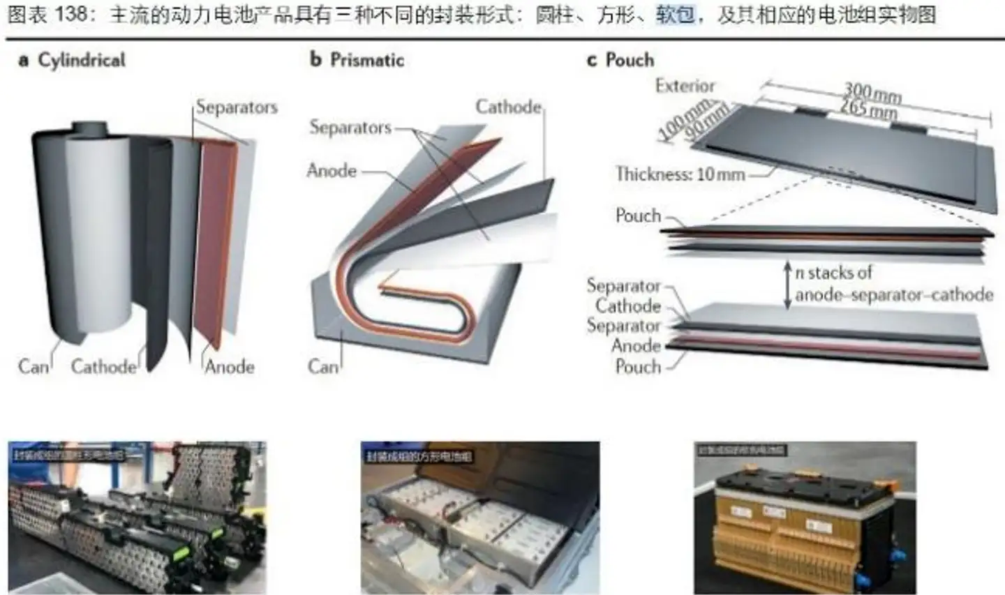 关于这个问题,我来简单说几句。这要从圆柱、方形、软包三种封装形式说起
