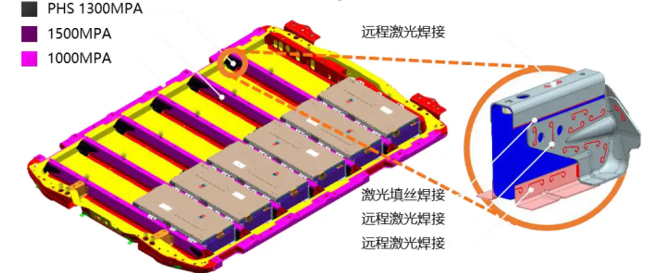 传统电池包 内部往往有多道横纵梁,横纵梁本身再加上金属连接件的体积与重量不可忽视。