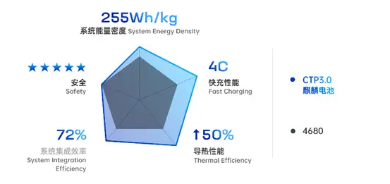 毕竟,提升低温、快充、寿命、安全方面,往往意味着更精细、更复杂的热管理设计,可能会拖累体积利用率。这也是我们常说的,电池包的设计面临能量密度与热管理之间此消彼长的取舍关系。那麒麟电池是怎么做到全面提升的呢?原因只能是技术创新了!