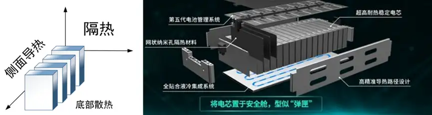 麒麟电池捅破了这层窗户纸,大胆地采用了侧面水冷散热&隔热+较小侧面隔热的方案。