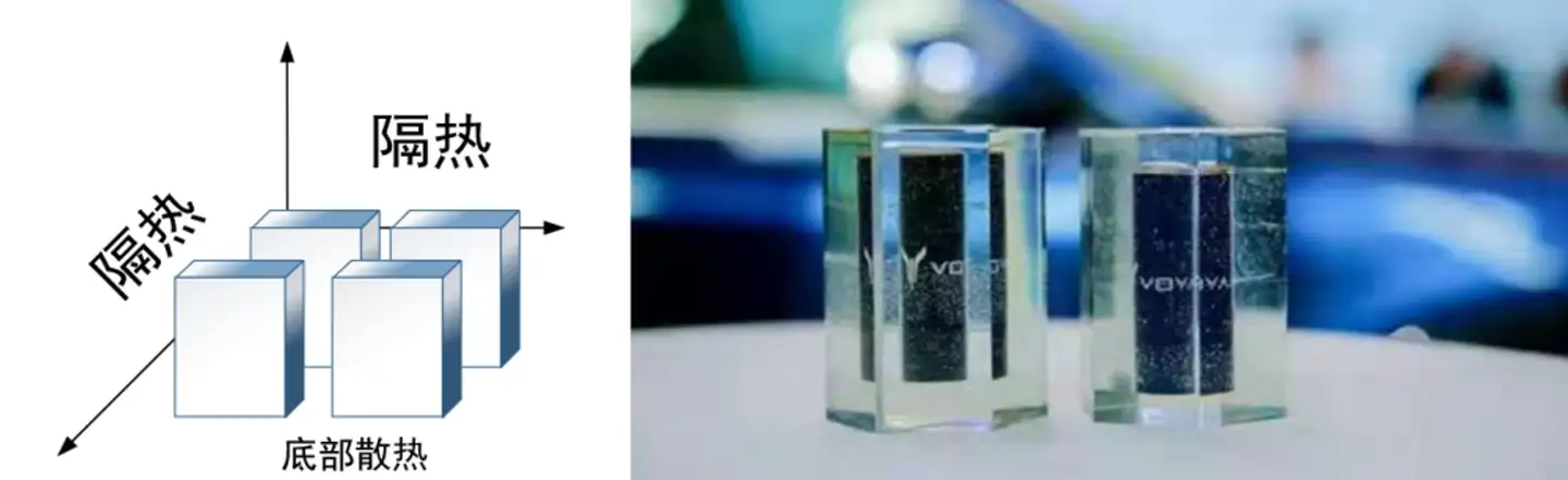 这种侧面隔热+底部散热+小侧面导热的方案,不仅增强了安全性,也提升了快充潜力。但是,由于模组结构与隔热材料的存在,再考虑到侧面导热不如散热,这种方案依然有提升潜力。