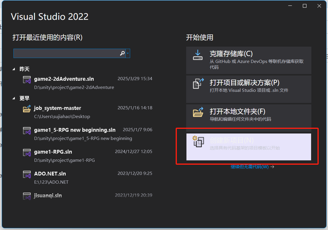 创建新项目