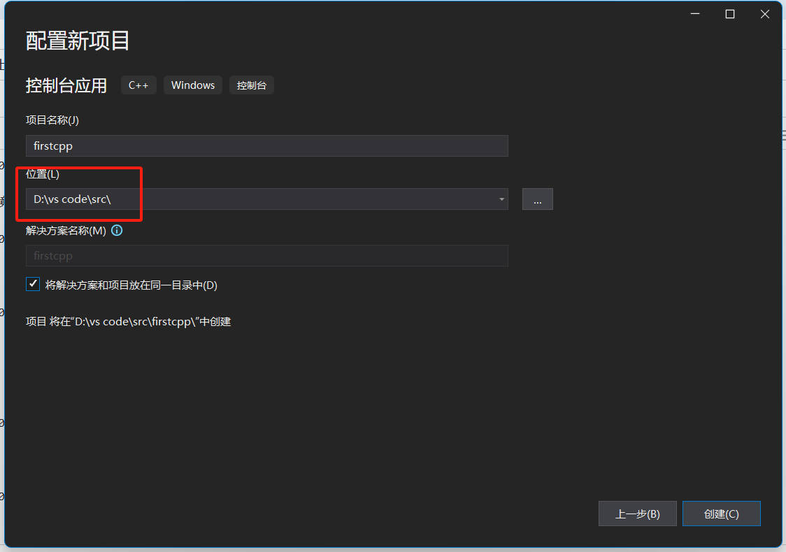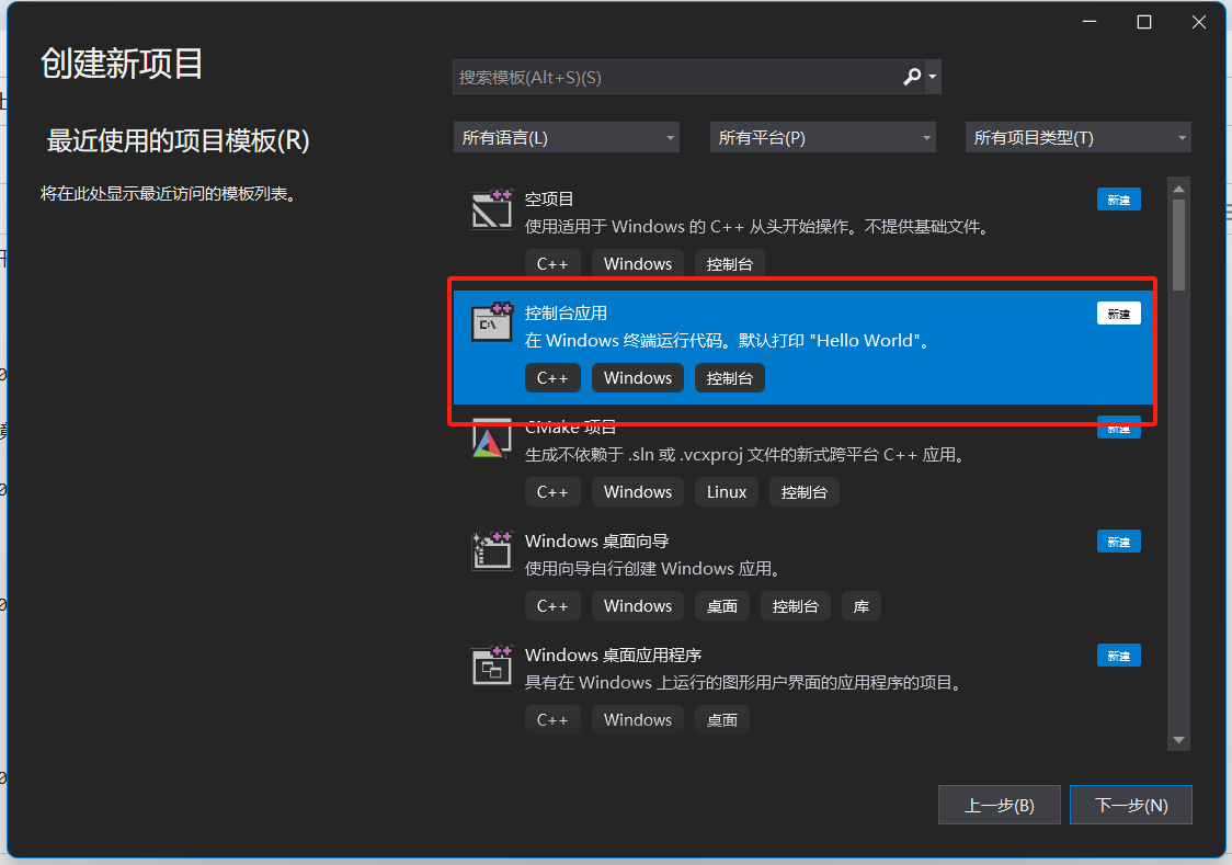 选择控制台应用