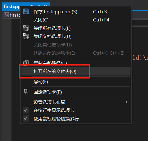 打开所在文件夹