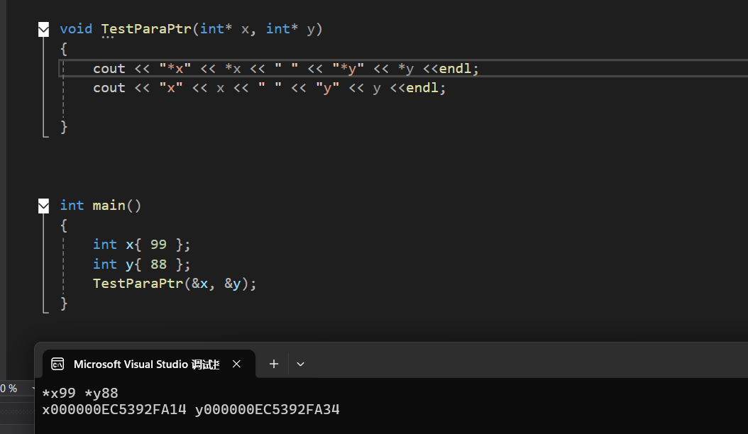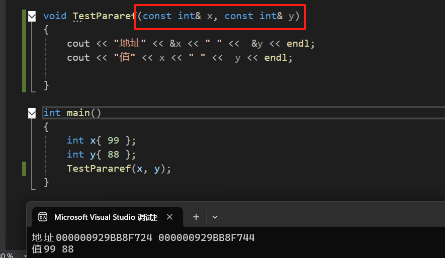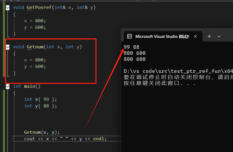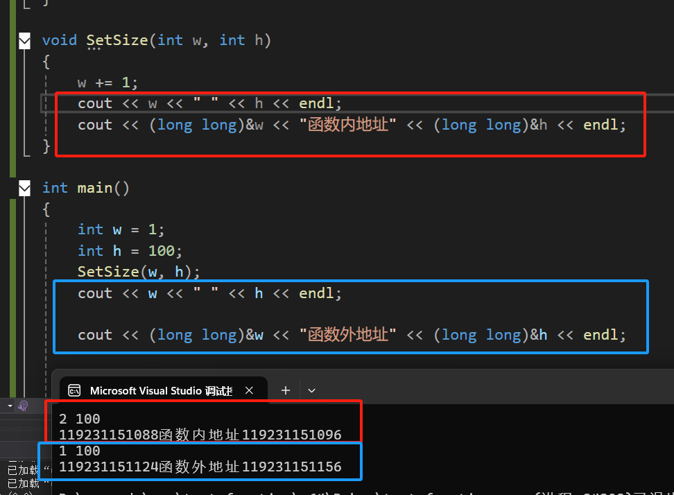 可以看到,函数的形参并不会改变函数外实参的值,且函数的形参是单独分配的另一块栈区空间