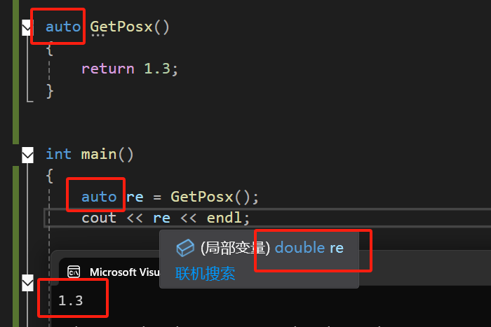 定义函数时可以使用auto,其返回值会根据函数返回类型决定
