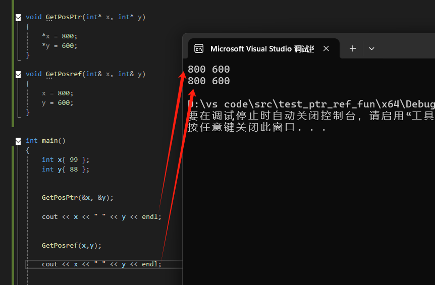指针和引用一个是访问内存地址,一个是绑定变量,因此可以访问并修改函数外部定义的变量,从而当作返回值