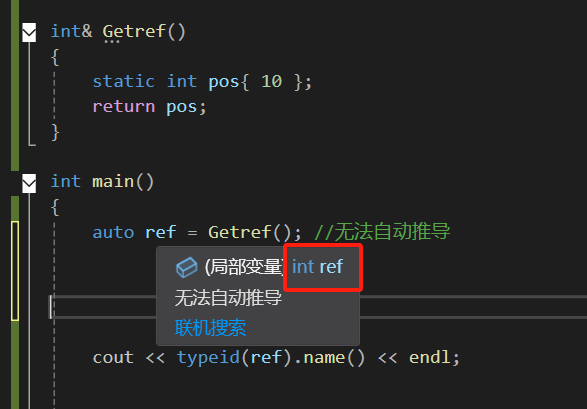 返回一个引用,但是引用类型不能被自动推导,需要auto &