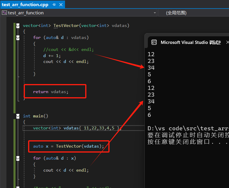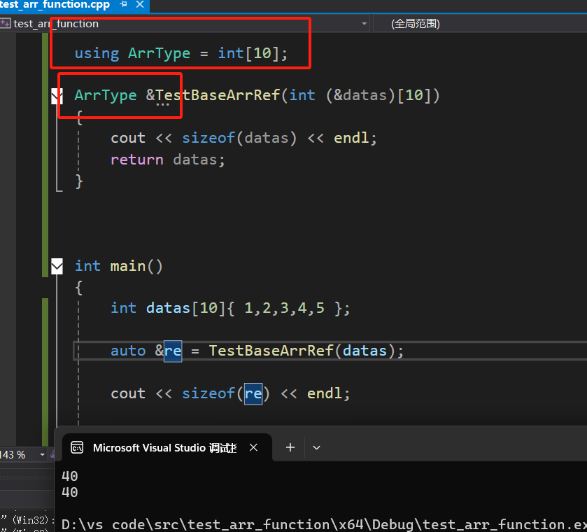 如果要返回数组,因为函数无法返回引用类型,所以就要先定义一个数组类型,然后把数组类型变为引用