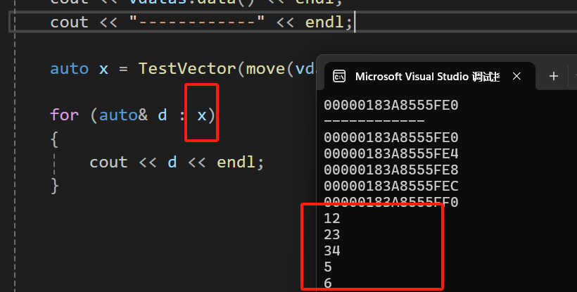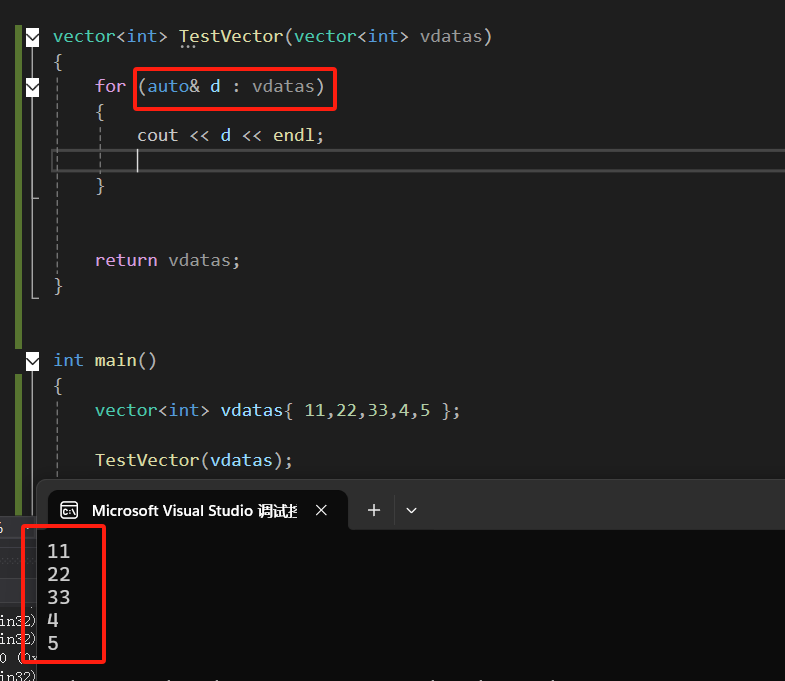 定义一个名为 TestVector 的函数,该函数接收一个 vector