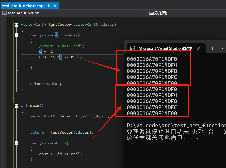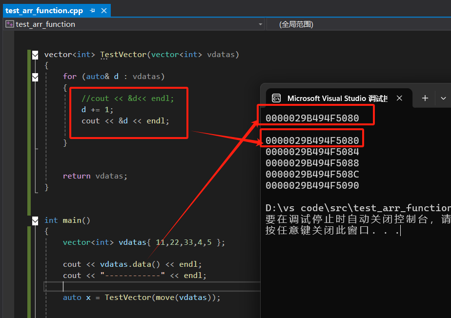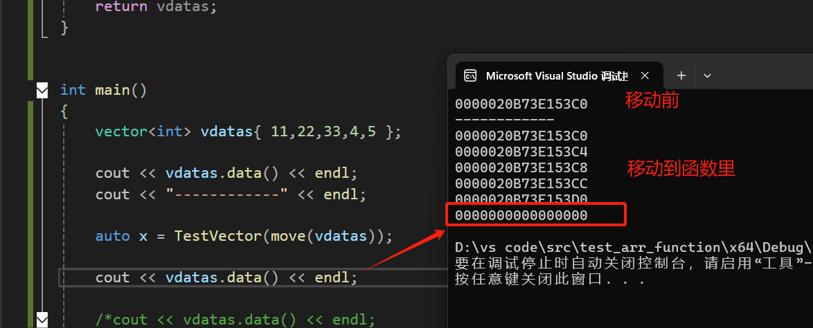 本质是将数组这些内存移动(move)到了函数中,因此代价是函数外数组“空了”