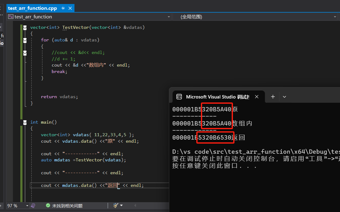 经测试发现,原数组和函数引用的数组是同一地址,但是函数返回出来后地址改变