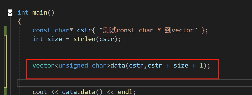 vector<unsigned char>构造vector数组,将字符串cstr的内容复制到数组data中