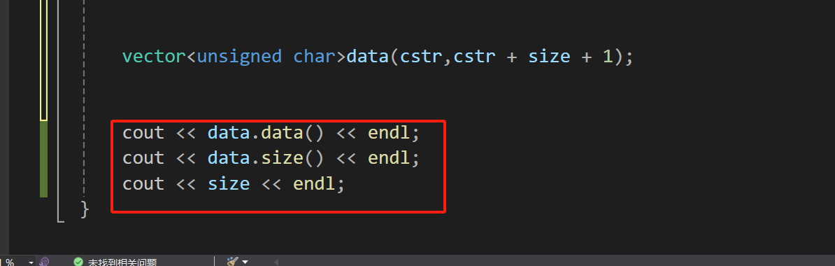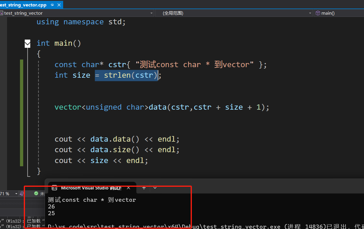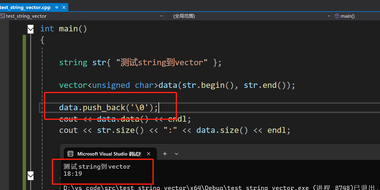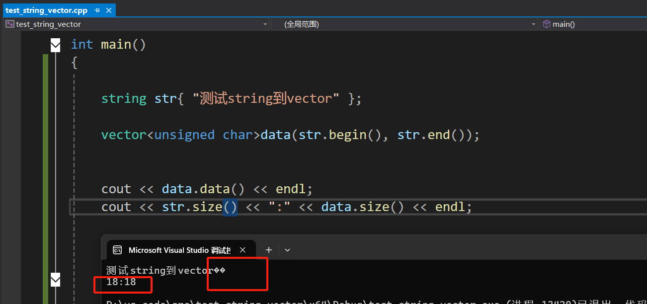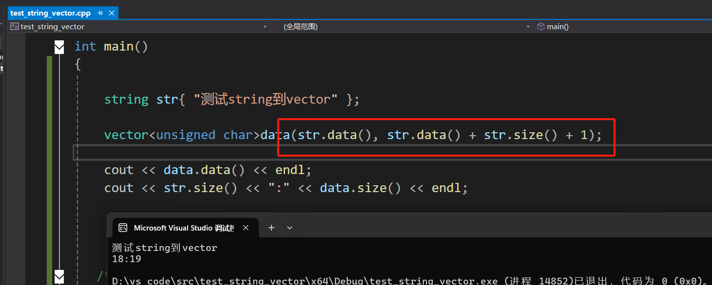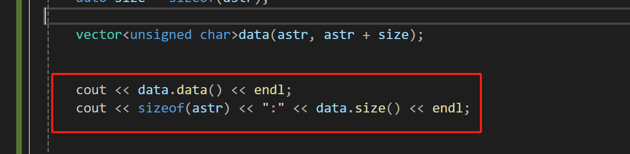 data.size()输出vector数组的大小(即字符串的字节数,包括终止符 \0)。