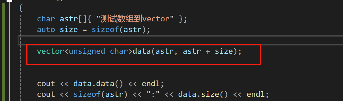 vector<unsigned char>的构造vector数组,将astr的内容复制到data中。