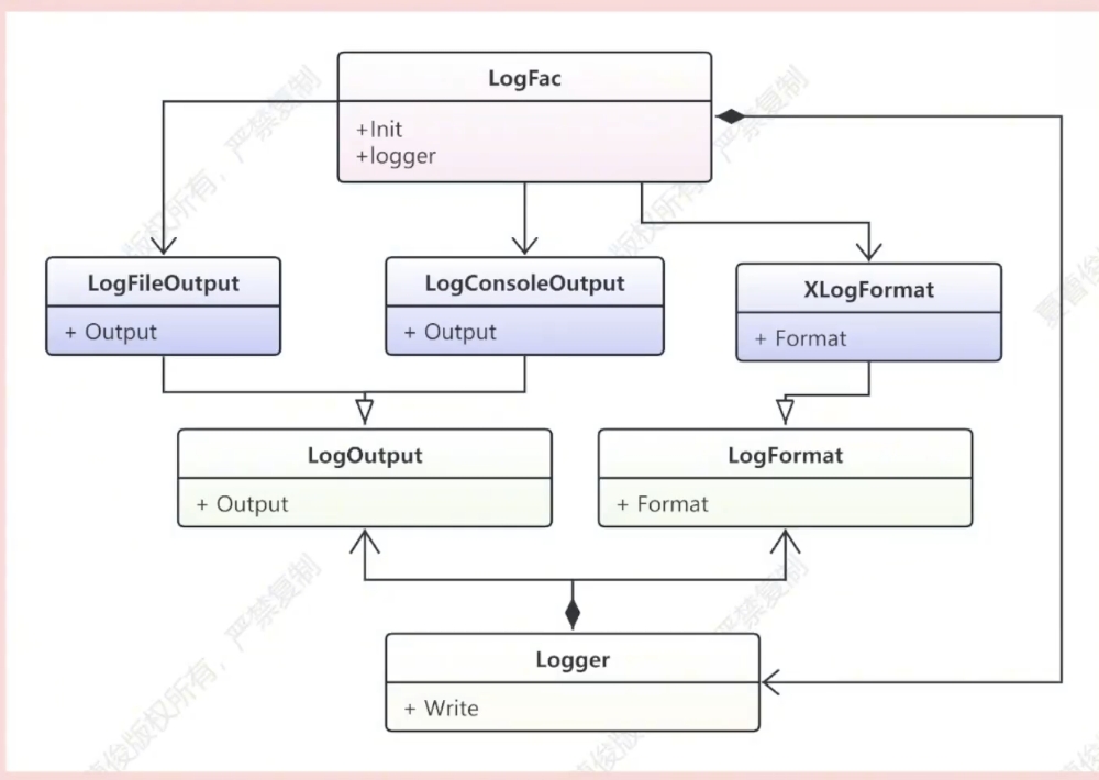 组合类Logger负责委托LogOutput和LogFormat完成功能的实现
