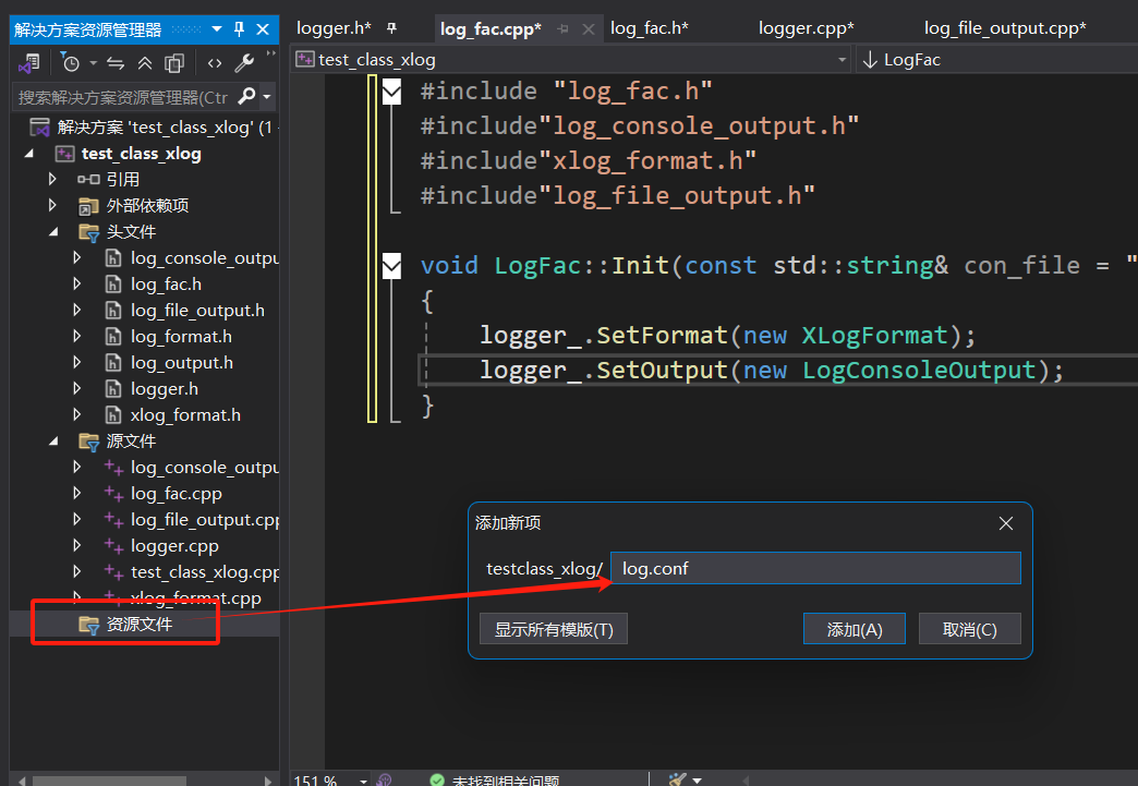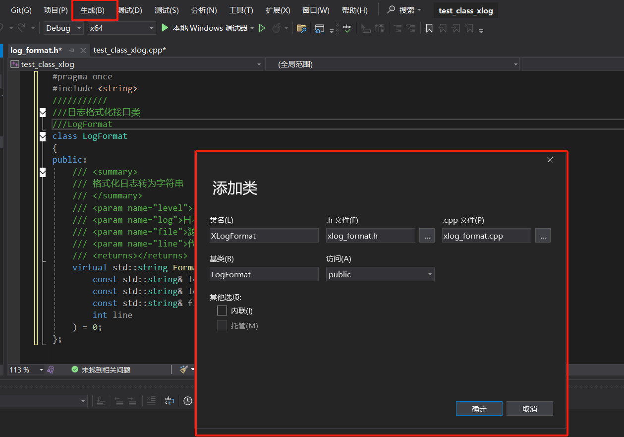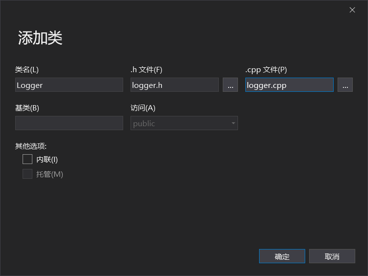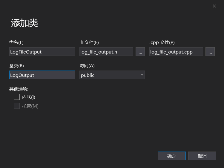 父类接口只需要.h文件,而子类的声明和实现.h和.cpp文件都需要,一个个创建有些麻烦,因此在工具栏/项目/添加类/中一键添加文件