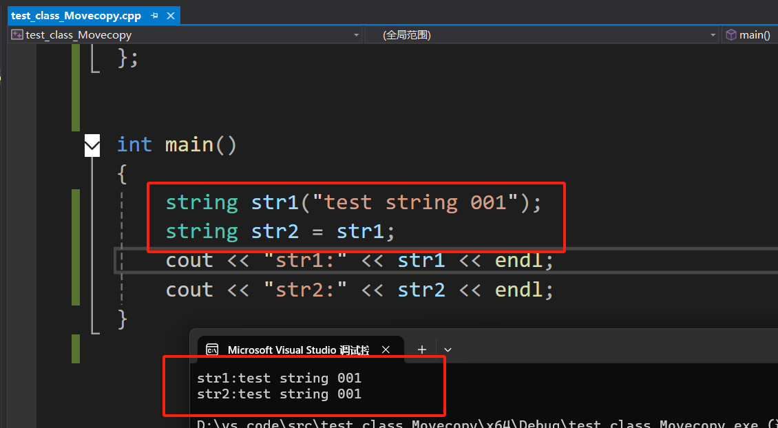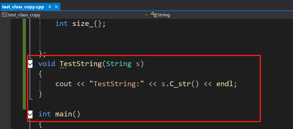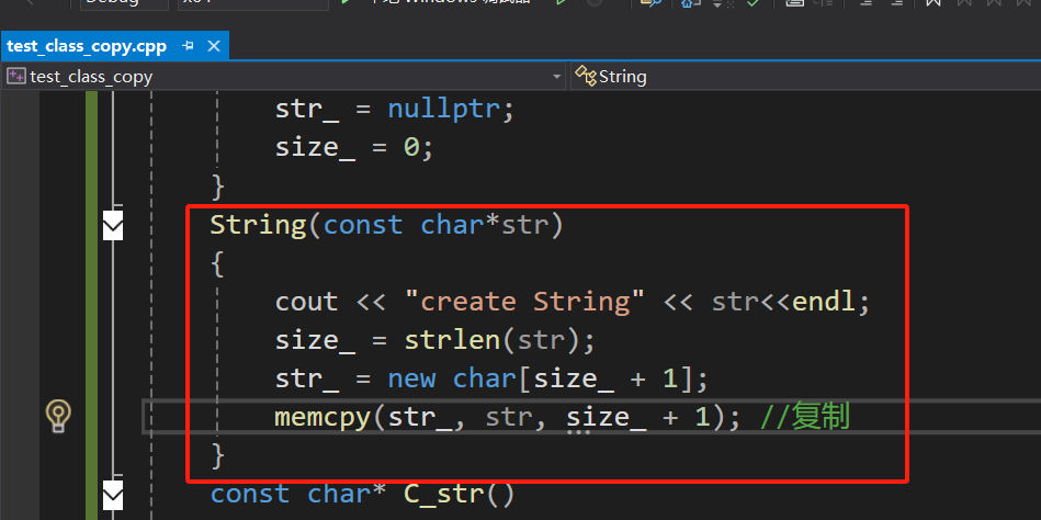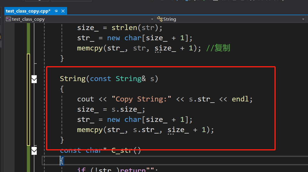 因为在 TestString(str1) 中,str1 被按值传递,会调用默认的浅拷贝构造函数。