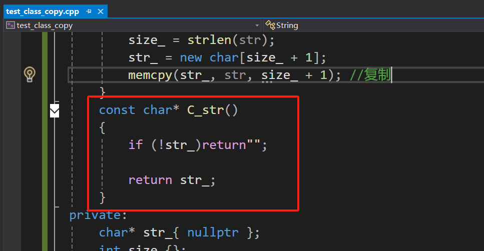 为新对象分配动态内存,大小为 size_ + 1(包括末尾的 \0)。