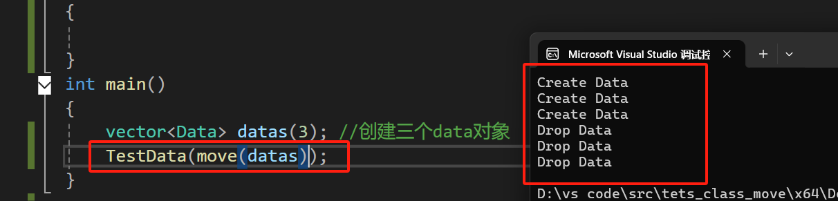 如果将TestData 函数中的参数不进行复制,而是移动语义进行右值引用