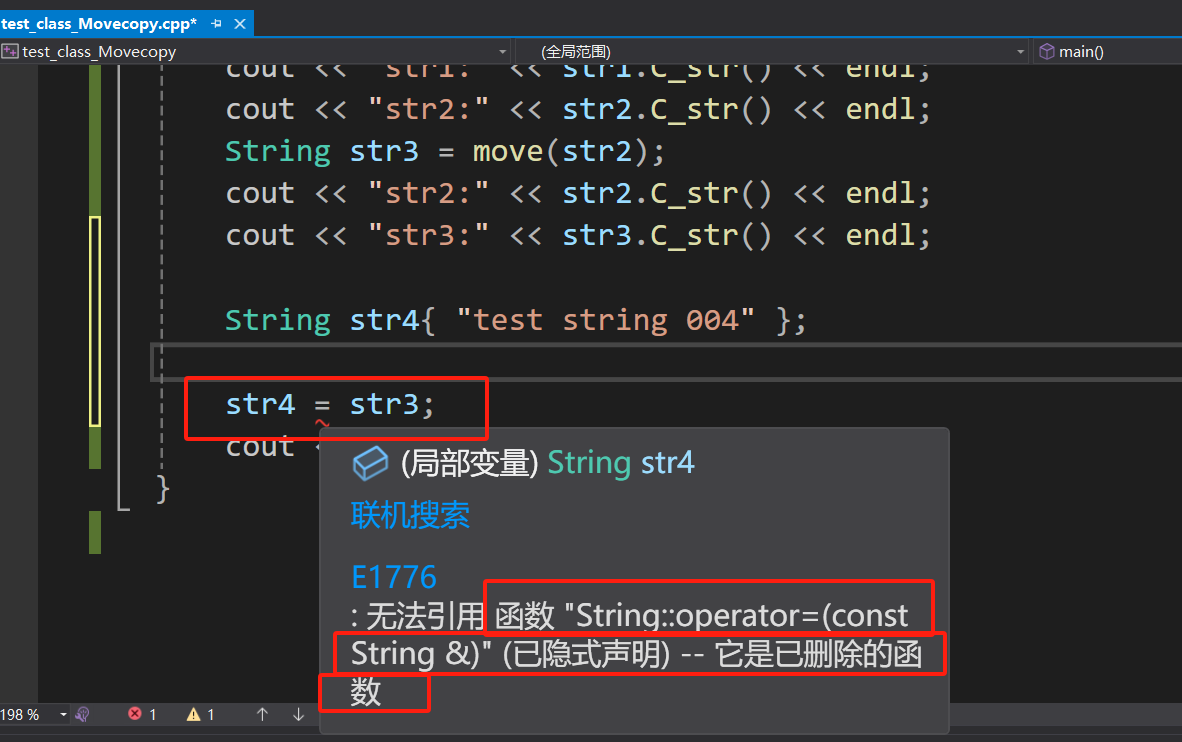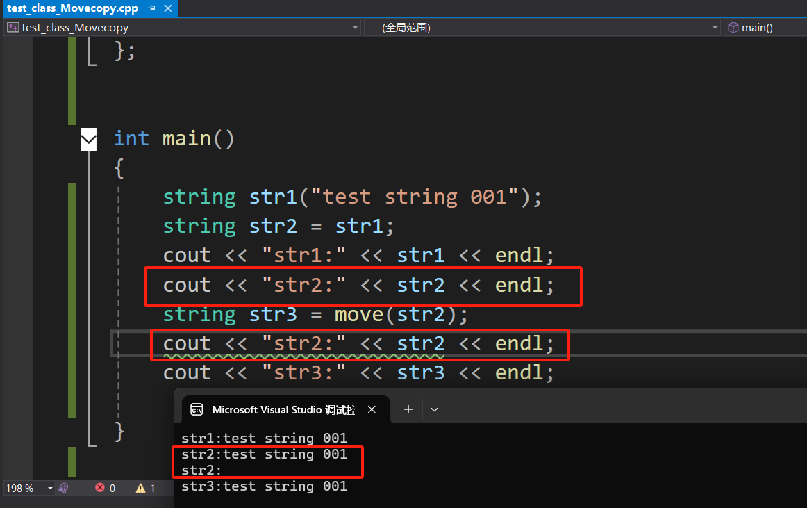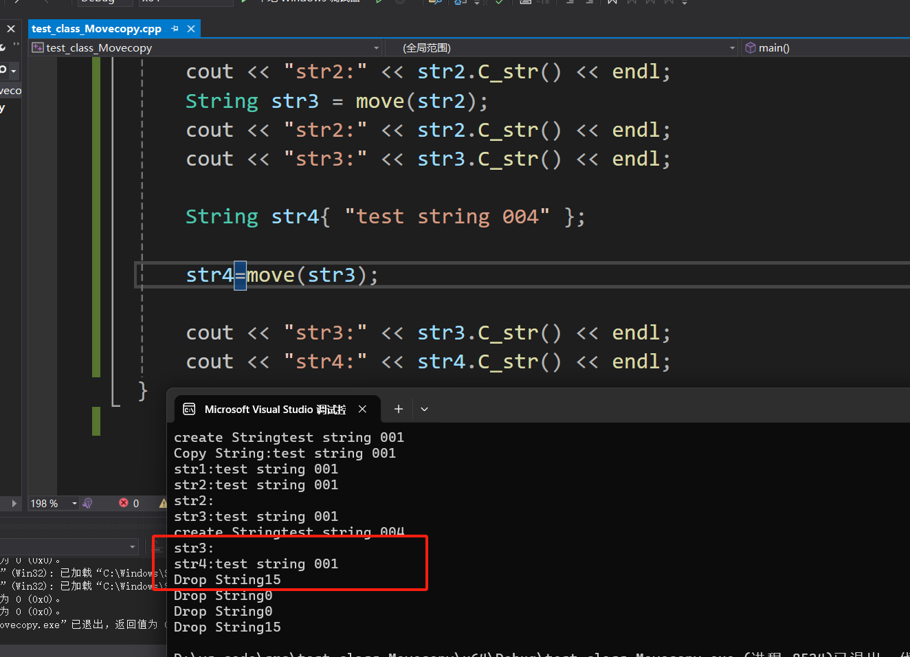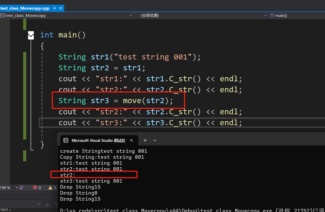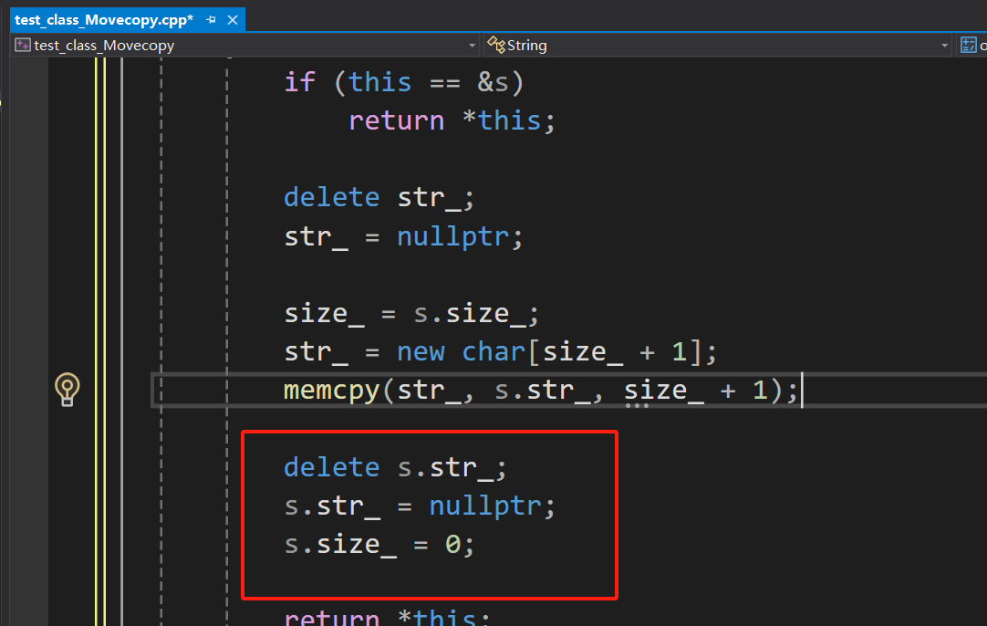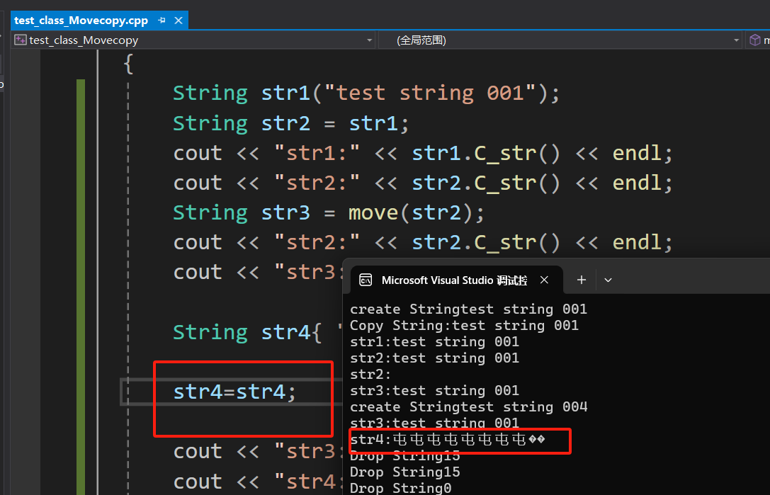 因此移动构造函数的逻辑就是将str2的内容,移动到str3中,并将str2为空