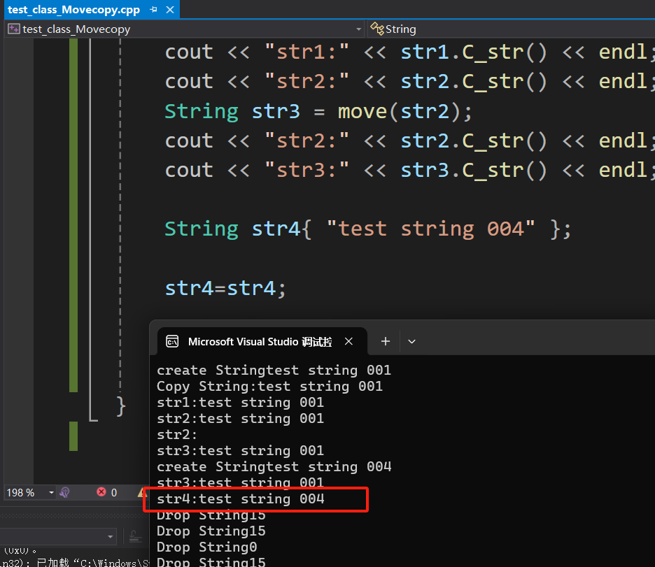 在创建的String自定义的移动构造函数如下,功能和string的相同