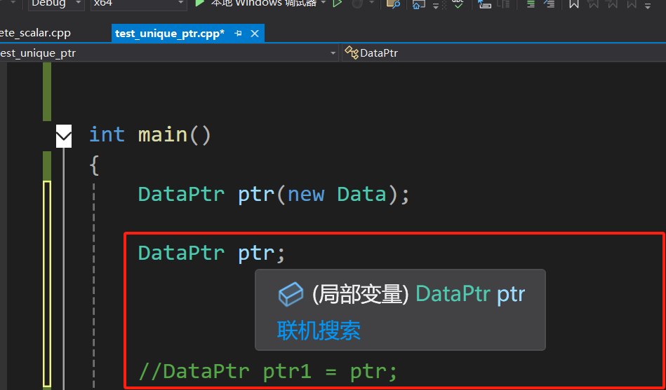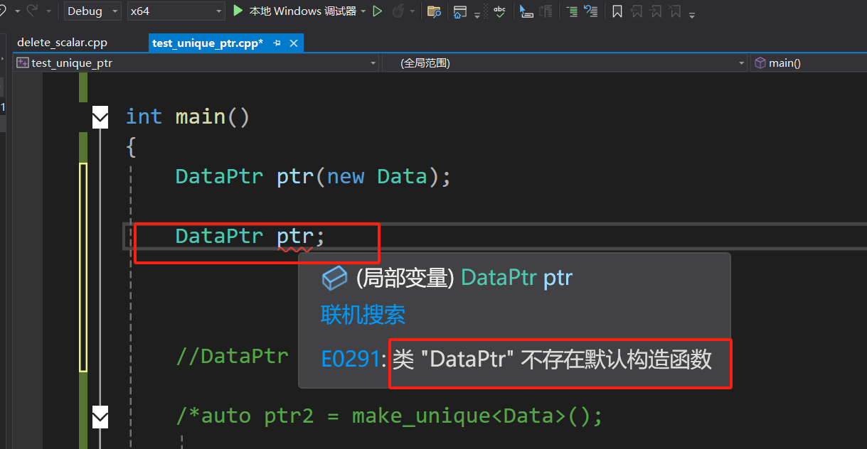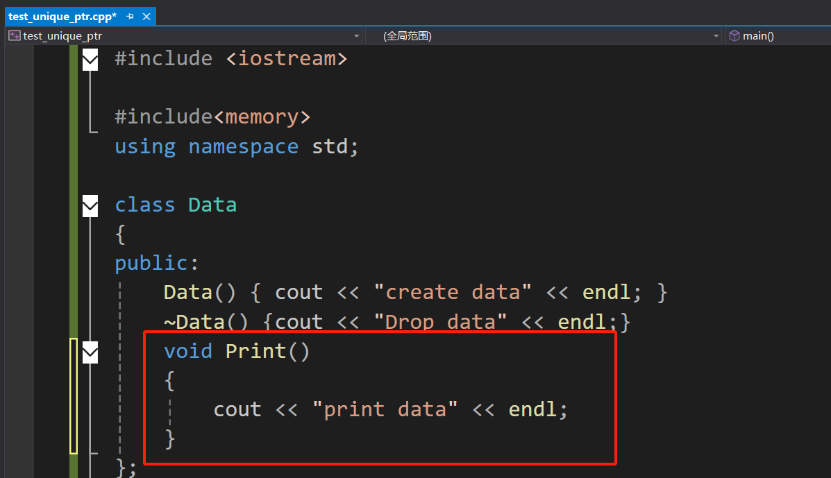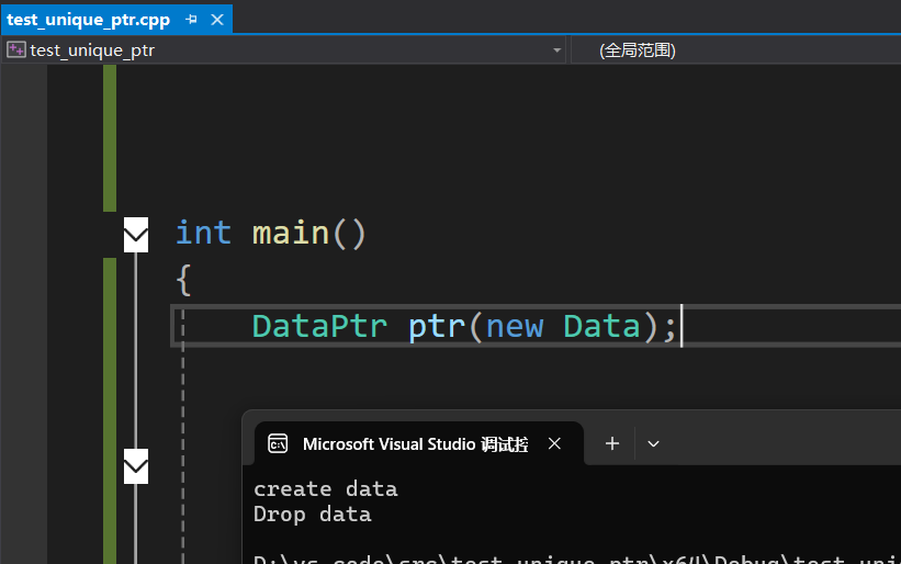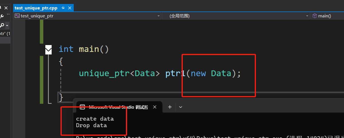 使用new 运算符动态分配一个 Data 类型的对象,并调用其构造函数。然后将Data交给智能指针来管理