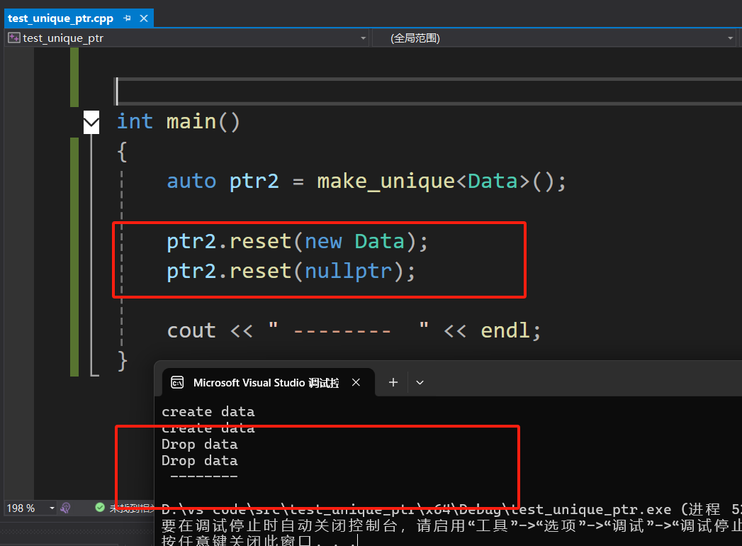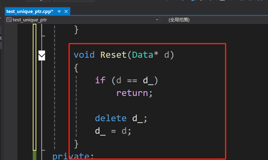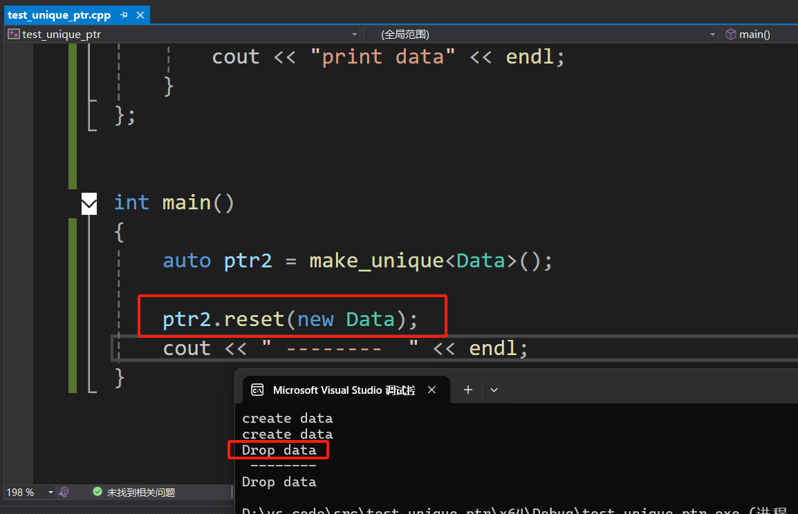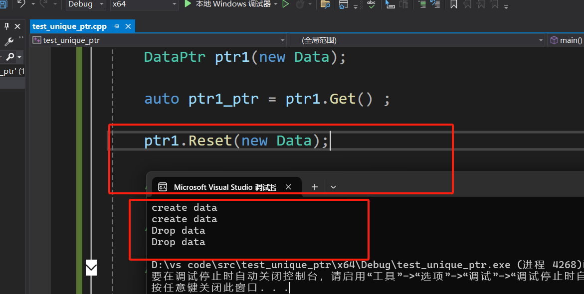 将 unique_ptr 当前管理的对象释放,并接管一个新分配的 Data 对象的所有权。