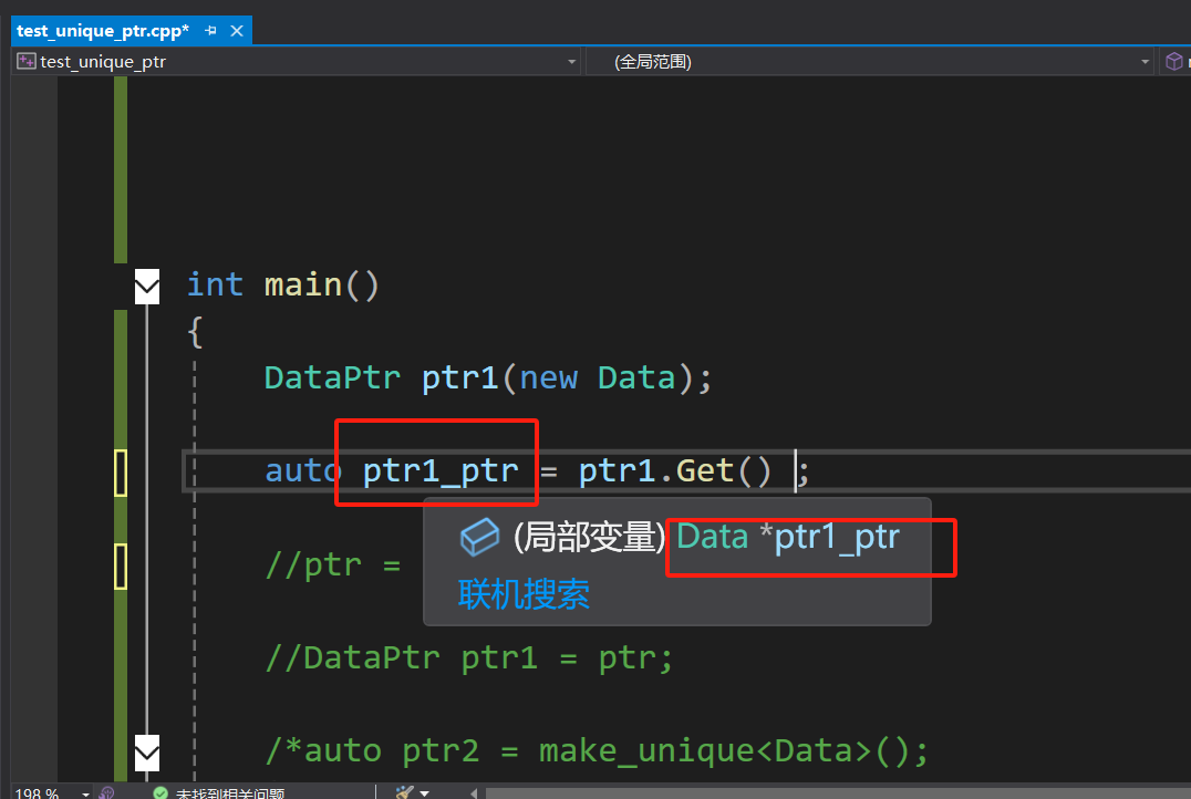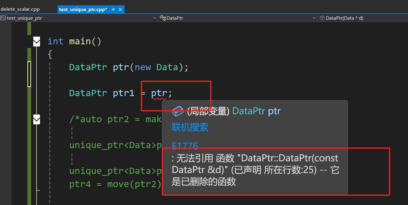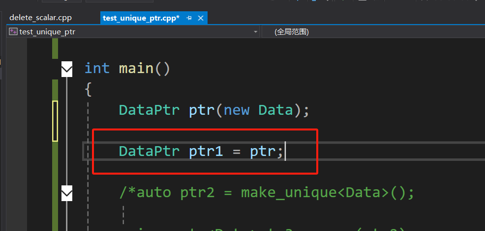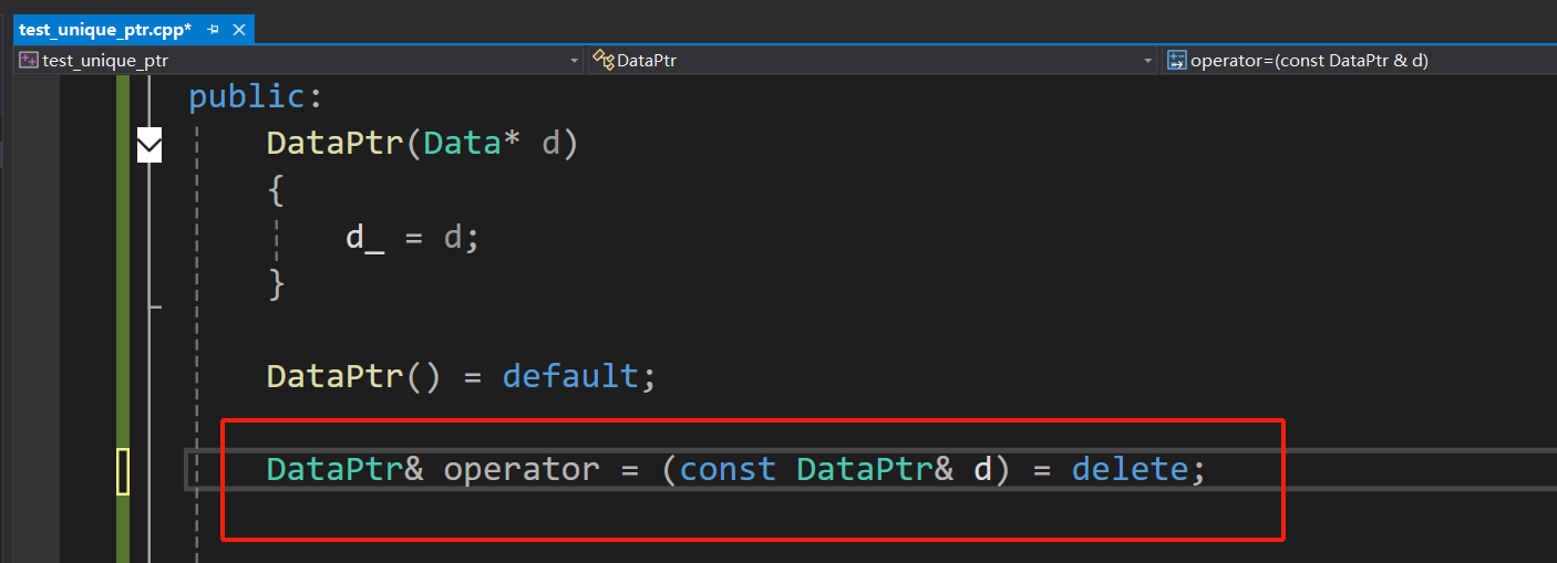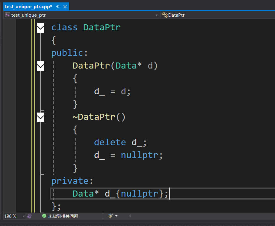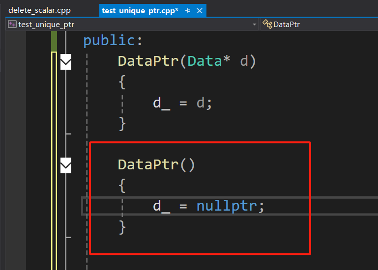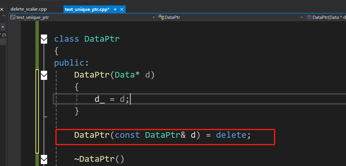 第一步:创建一个指针,将参数指针构造进来,析构时释放掉
