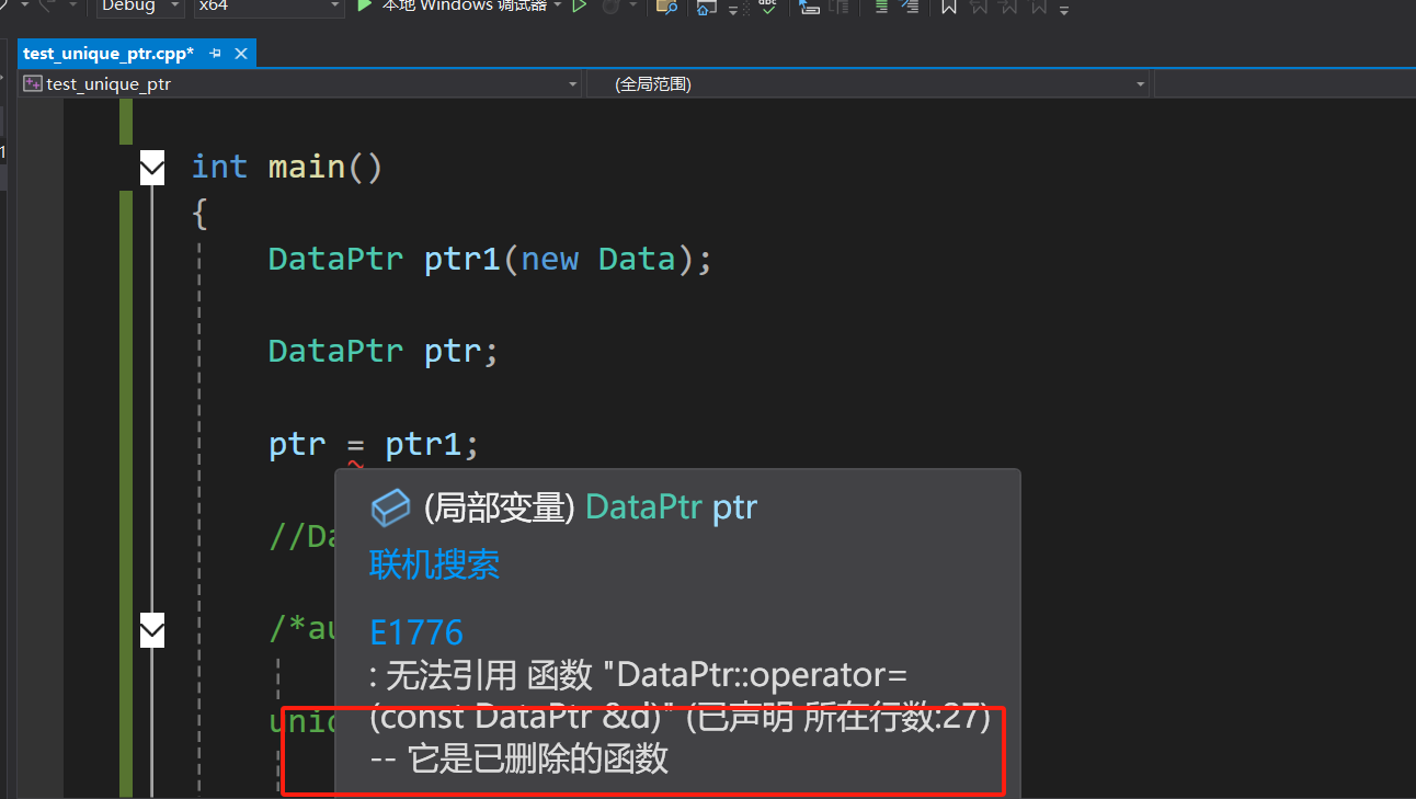 限制拷贝构造和赋值函数,保证指针使用的唯一性