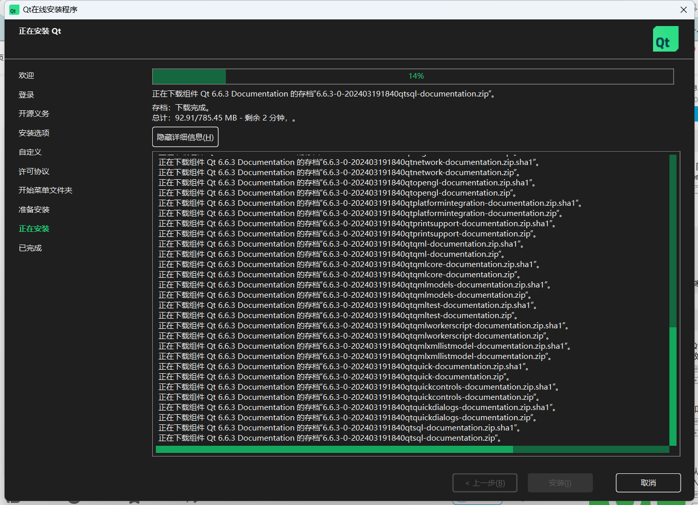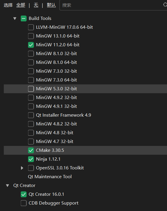 建议:按需勾选(如需要 Qt SQL 或 Qt Network)。