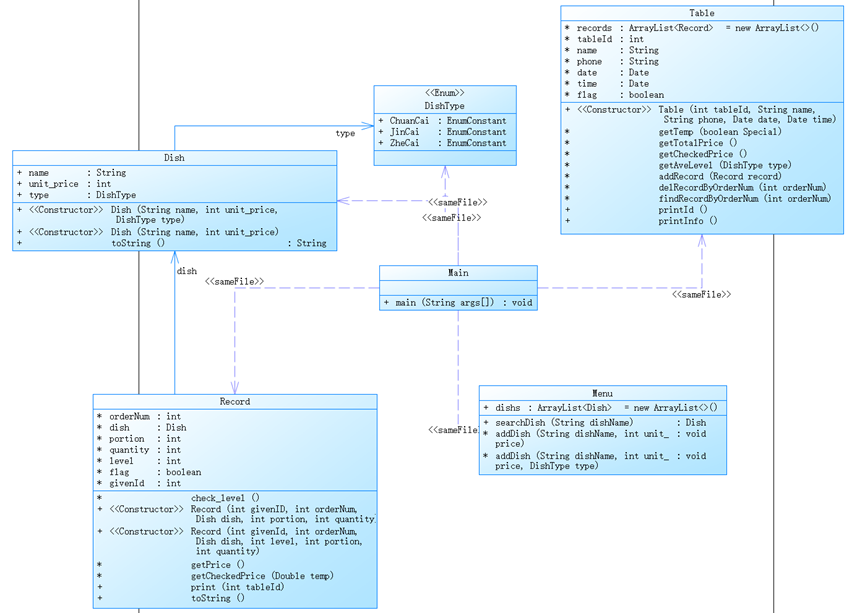 在Record类的print方法中,对dish的type属性进行了访问,如果dish为null,就会抛出空指针异常。在使用对象属性之前,需要进行合理的空指针判断。