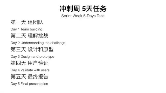 那5天的Design Sprint到底如何操作?在Sprint Week里,五天你会和一群人做下面这些事情。看起来就是一个小型项目的雏形。