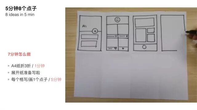 我们要在这个环节发散出尽可能多的点子。有4个方法:头脑风暴/5分钟8个点子法/5分钟1个大点子法/5分钟1个故事板法(后面3个算是关联递进的方法)