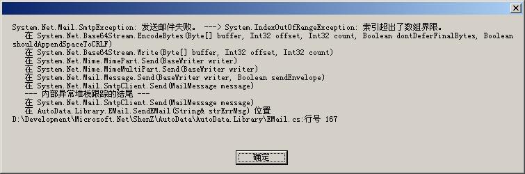 在FrameWork4.0中测试,发再超过一定大小的文件,在发送的时候就会产出如(图一)的异常信息,导致邮件发送失败!