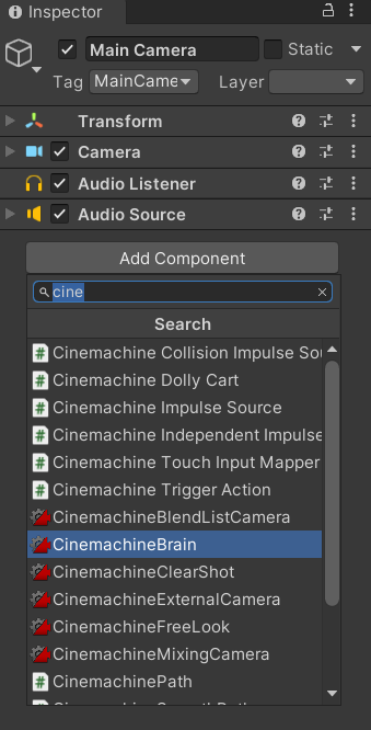 add a vcam(main): Object>Cinemachine>Virtual Camera
