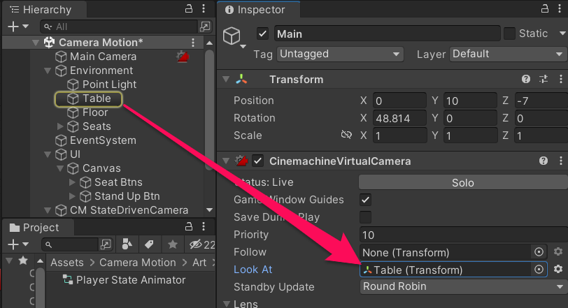 - use case: 假设一个棋牌游戏的房间,玩家进入房间后处于站立视角,点击座位后,玩家入座,视角切换,开始游戏