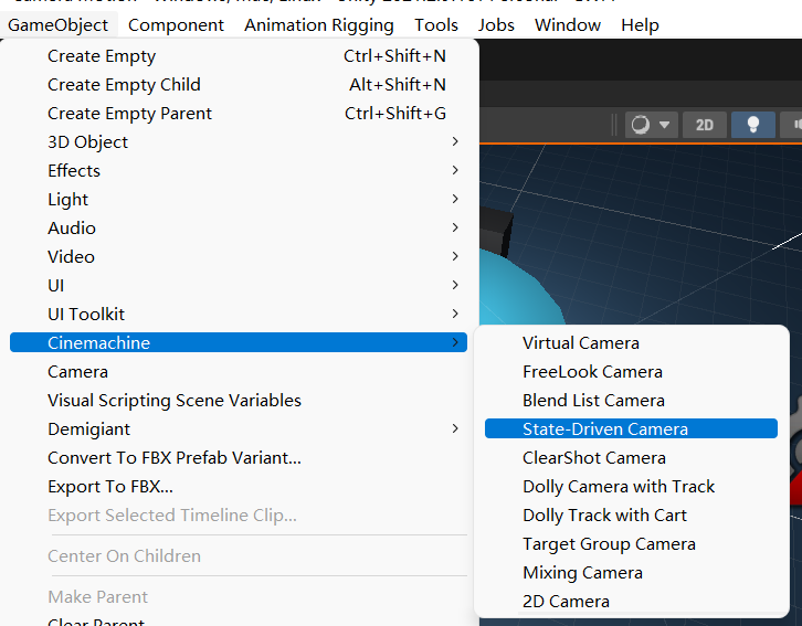 add State-Driven Camera: GameObject>Cinemachine>State-Driven Camera