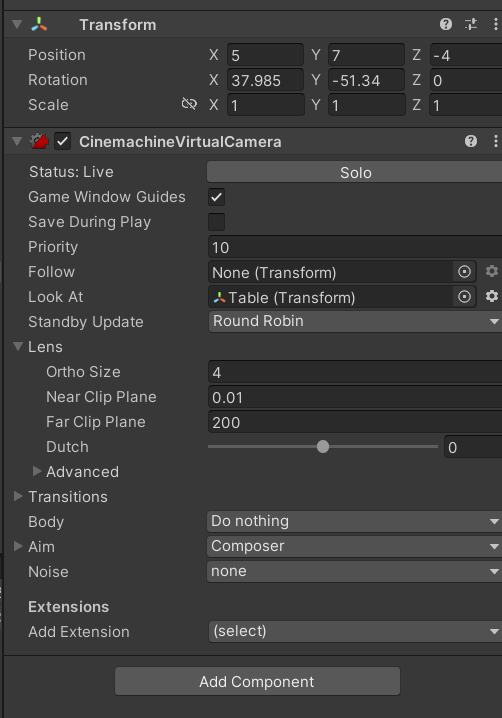 调整Transform 和 Ortho Size找到Player Sit Down视角
