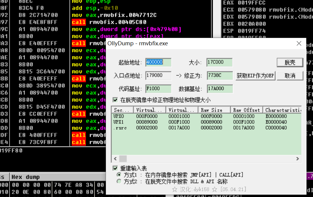 然后选择第一种或者第二种方式都可以脱壳