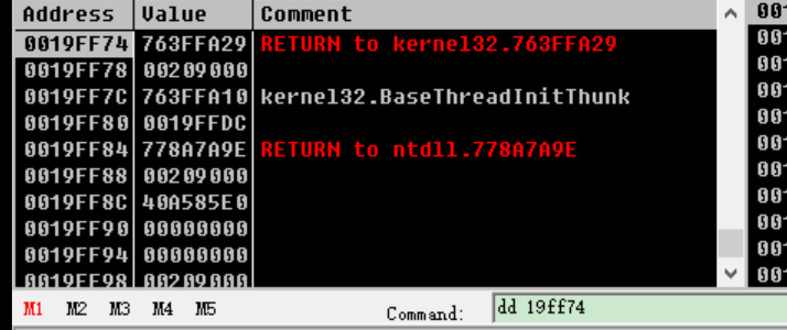 或者在命令行中输入 dd/hr esp寄存器中的值