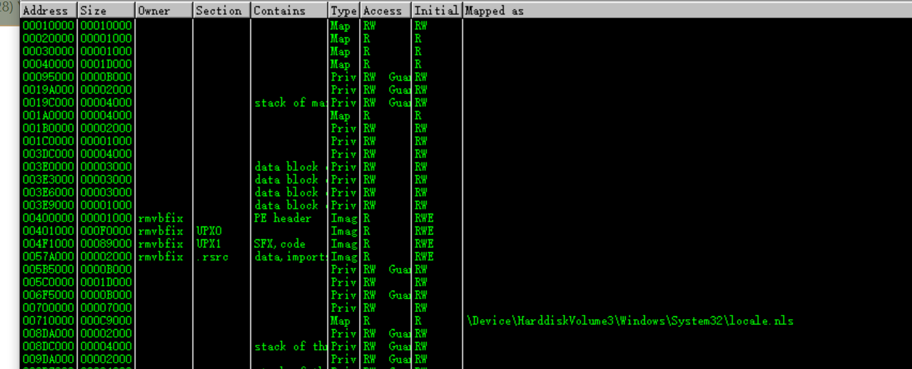 然后再点击UPX0那一行,再次下断点运行,