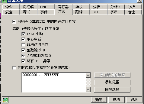 打开调试选项,只取消非法访问内存,点确定