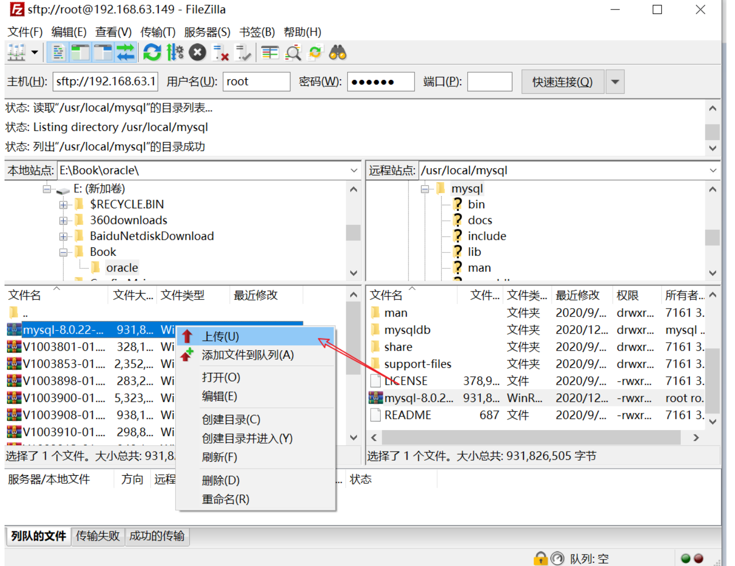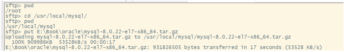 3. put E:\Book\oracle\mysql-8.0.22-el7-x86_64.tar.gz #将目标文件上传