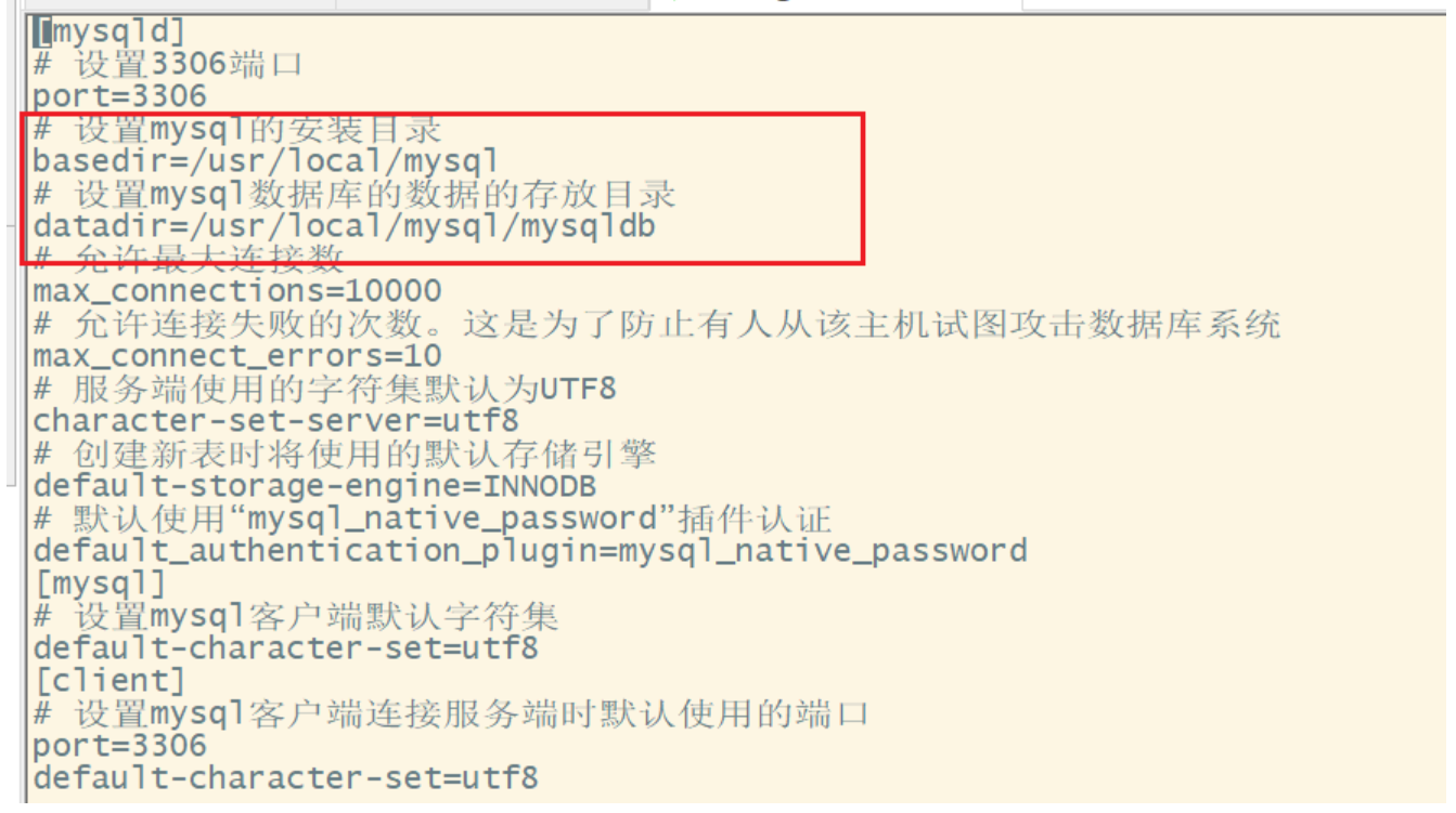 检查my.cnf文件中的mysql安装目录的地址是否与创建的一致,如果不一致改成MySQL的安装目录。