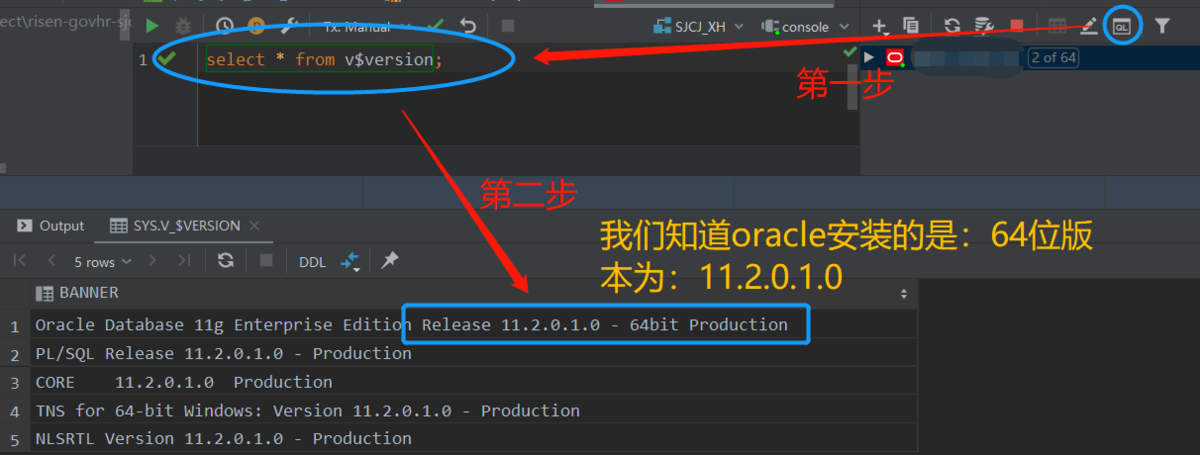 先用你的IDEA或者别人的连接到oracle数据库(为了查询版本)
