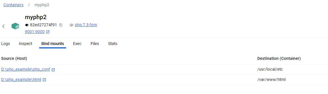 docker run -p 9001:9000 -d \ --name my_php \ -v /myweb3/html:/var/www/html/ \ -v /myweb3/php_conf:/usr/local/etc/ \ php:7.3-fpm