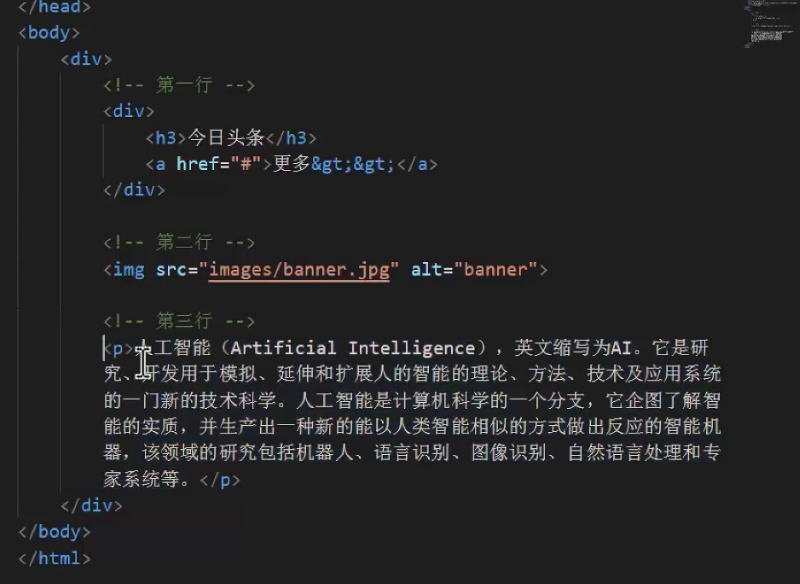 段落标签:也是默认带有样式的! 段落标签与段落标签之间会进行空行分割开。